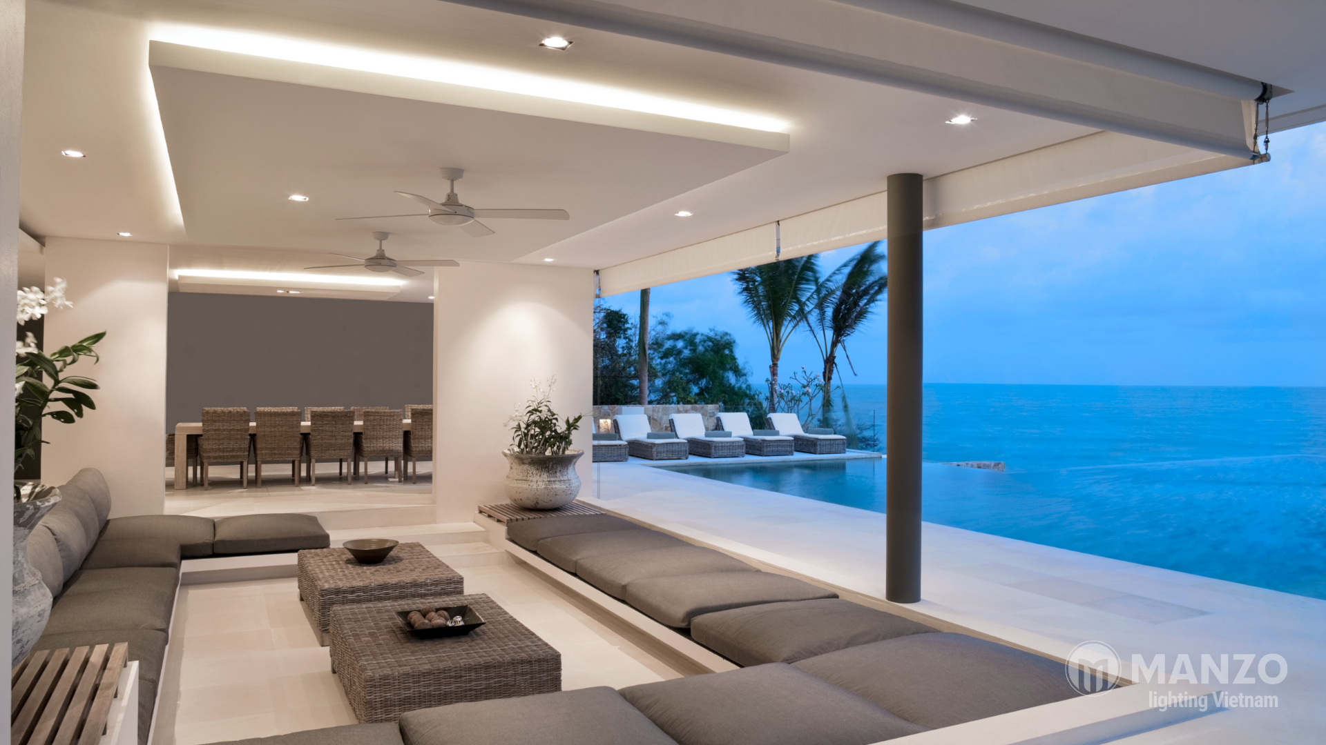Không chỉ các công trình lớn, Manzo Lighting còn triển khai nhiều dự án chiếu sáng biệt thự, nhà vườn, showroom nội thất…